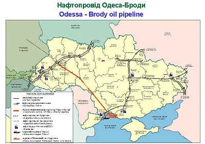 The 674 kilometer oil pipeline, completed by the Ukraine government in 2001 between Odessa on the Black Sea and